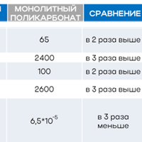 В преимуществах композитного листа перед поликарбонатом по прочности можно убедиться, если сравнить их физические параметры.