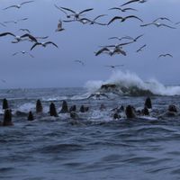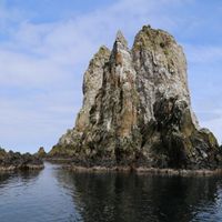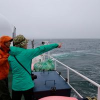 Прибытие к м. Козлова (Кроноцкий п-ов)Спустив лодки, мы осмотрим с воды залежку сивучей. На прилегающей водной акватории обычны скопления кайр и чаек. На этой скале ежегодно ведутся мониторинговые работы по изучению морских львов.