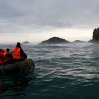 На зодиаках мы совершим прогулку по морю вдоль сурового и в то же время живописного берега, понаблюдаем сивучей, полюбуемся водопадом. Здесь в прибрежной зоне регулярно встречаются морские выдры – каланы.