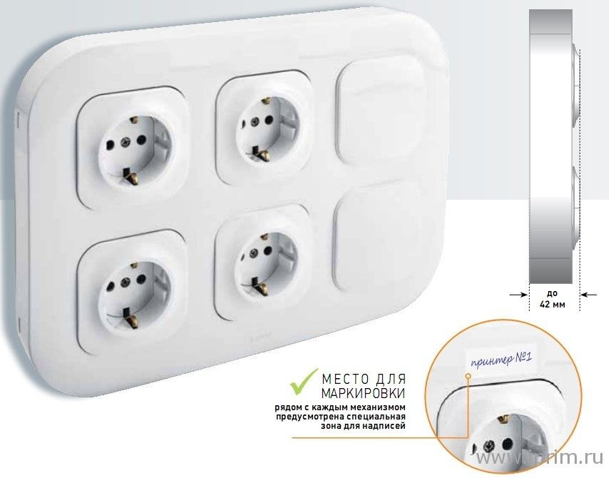 накладного монтажа Quteo - универсальные решения для квартир, коттеджей, террас, офисов, магазинов, банков. В основе новой серии - безопасное подключение, продуманные элементы монтажа, корпус IP 44, три цветовых решения. Клавиши выключателей изготовлены из ударопрочного и износостойкого пластика. Установочные блоки на 4 и 6 постов позволяют оперативно подключать информационные и платежные терминалы в общественных зданиях.
