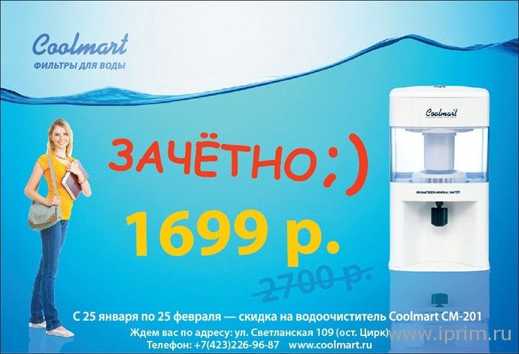 • заполнив анкету, могут приобрести водоочиститель Кулмарт СМ-201 со скидкой 1001р. за 1699р.