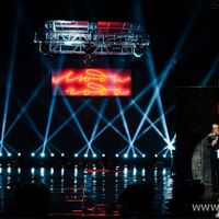 так же нестандартные работы - огромная подвесная инсталляция с неоновыми буквами на сцене, пюпитр с латунной передней частью, прозрачный короб для выступления солистки группы "ТОТАЛ".