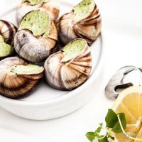 французскими виноградными улитками или фуа-гра, или тающим филе палтуса с