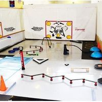 Тренажер представляет собой имитацию коньков и клюшки соперника, позволяя тем самым практиковаться в технике владения шайбой. Предназначен для выработки у игрока чувства противника.Тренажер не скользит на льду и его в любой момент можно собрать или разобрать. Его можно использовать как дома, так и во время тренировки на льду.Собирается и разбирается без помощи инструментов, может быть абсолютно на любой поверхности.