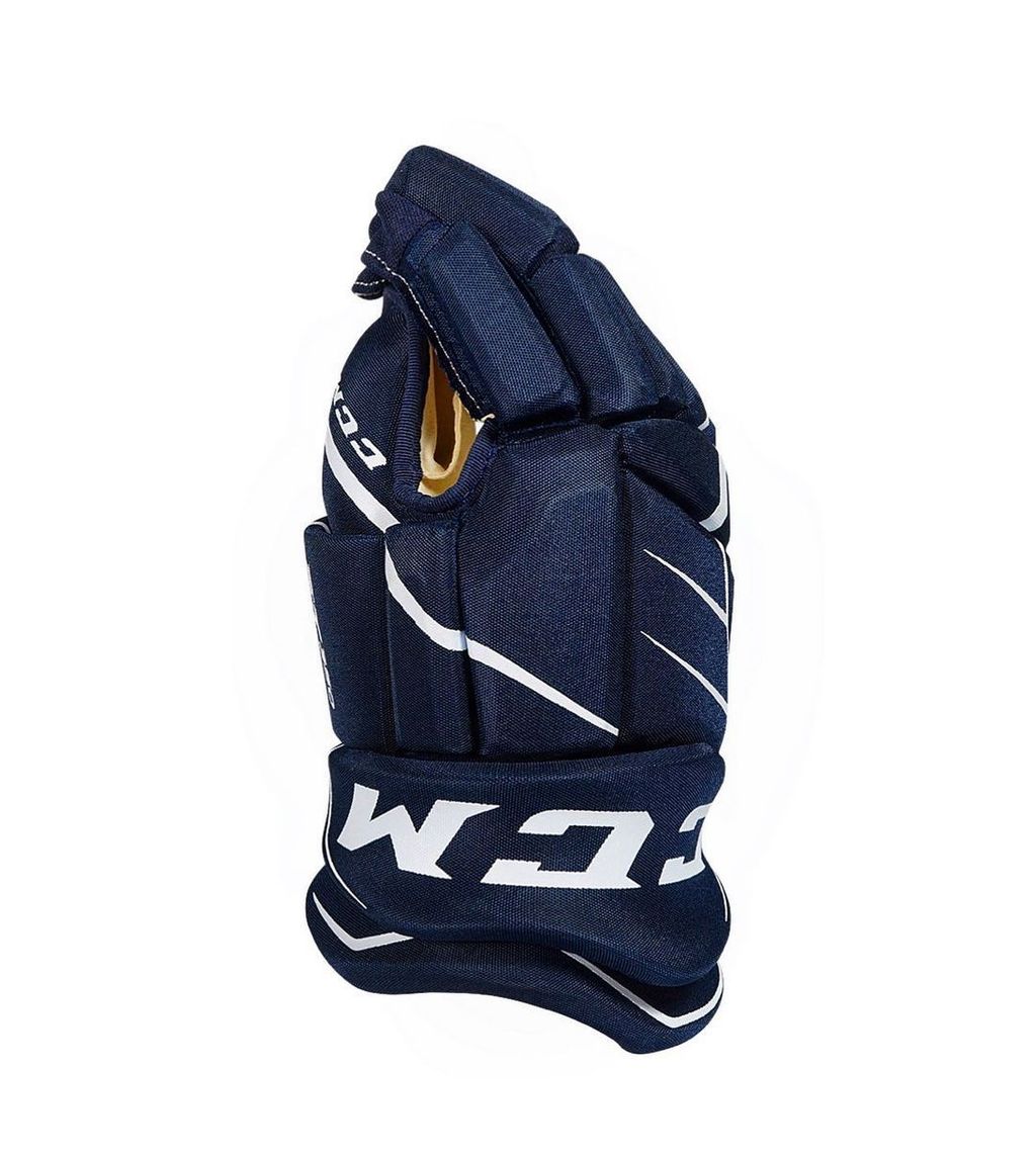 Топовая модель перчаток - CCM JETSPEED FT1. Перчатки имеют контурную посадку, которая уменьшает отрицательное пространство, усиливает передачу энергии и отзывчивость. Внешняя отделка скомбинирована из высокопрочного полиэстера Pro Selected, тканого нейлона и синтетической кожи, что обеспечивает отличный баланс между долговечностью, гибкостью, и воздухопроницаемостью. Тыльная часть перчаток полностью сегментирована для увеличения подвижности кисти.