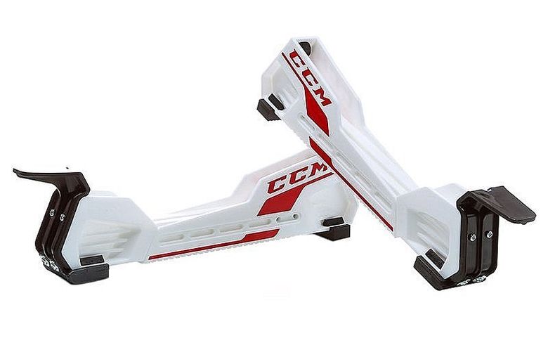 Чехлы CCM для лезвий хоккейных коньков изготовлены из прочного морозостойкого пластика белого цвета и имеют простую регулировку по длине. Конструкция Step позволяет надевать чехлы без рук, просто наступив на них. Надёжная система регулировки помогает максимально точно подогнать изделие под необходимый размер конька. На подошве расположены подушки из прочной твердой резины, благодаря которым передвигаться можно даже по скользкому покрытию. Мощное крепление гарантирует надежную фиксацию чехлов не только во время транспортировки, но и во время ходьбы в них. Удобно, что данная модель подойдет для коньков любого бренда!