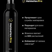 - Helmetex Pro (для шлема) удаляет неприятный запах, воздействуя непосредственно на молекулы, являющиеся его источником. Обладает антибактериальным и дезинфицирующим действием. Средство от запаха подходит для обработки любых видов поверхностей: текстиль, поролон, натуральная и искусственная кожа, замша, пластик и т. д. Избегайте попадания средства на визор шлема, а в случае попадания поскорее смойте водой.