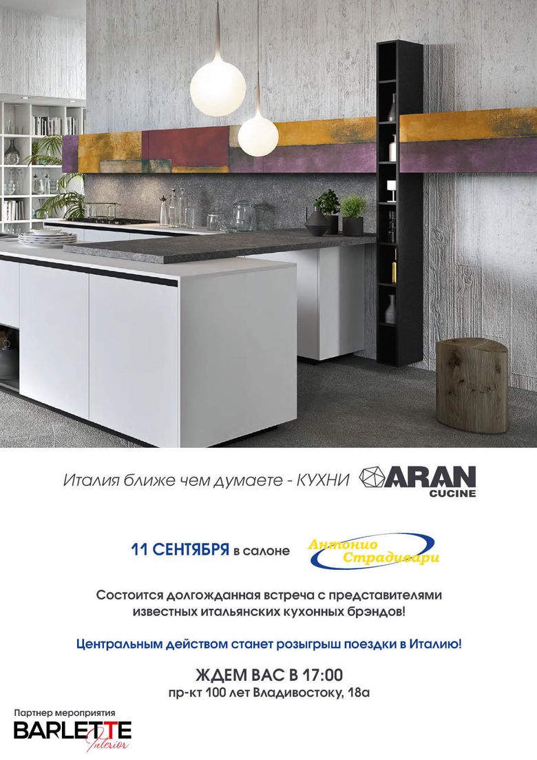 11 сентября салон "Антонио Страдивари" приглашает всех желающих на встречу с представителями итальянских кухонных брендов. Вы сможете лично узнать, что сейчас в моде, какие технологии используются в современных кухнях. И приятный бонус - на встрече будет проводиться розыгрыш поездки в Италию!