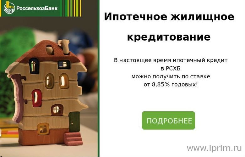 В настоящее время ипотечный кредит в РСХБ можно получить по ставке от 8,85% годовых, данное предложение является одним из наиболее привлекательных на рынке. Кроме того, есть возможность приобретения новостройки у партнеров Банка за счет ипотечных средств по ставке от 5,17% годовых. По итогам 2017 года РСХБ входит в число лидеров ипотечного кредитования в России.