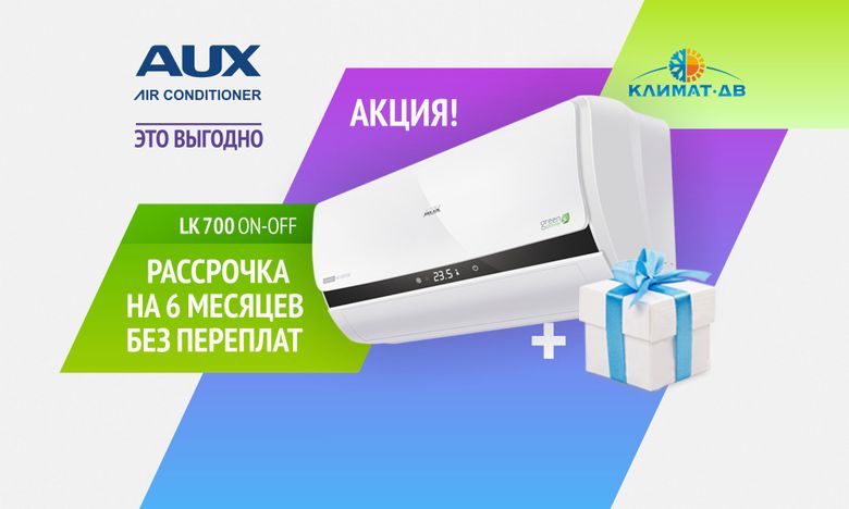 В компании "Климат-ДВ" кондиционеры AUX серии SMART ON/OFF LK-700 вы можете приобрести в рассрочку. Приходите по адресу ул. Днепровская, 98д, заглядывайте на сайт компании для ознакомления с полным ассортиментом техники для дома или звоните по телефону +7 423 209-06-06. С радостью ответим на все интересующие вопросы и проконсультируем по ассортименту.