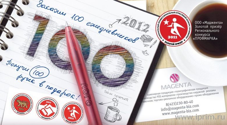 Компания «Маджента» проводит акцию для своих клиентов: каждый, кто до 15 декабря 2011 г. закажет не менее 100 ежедневников, получит в подарок 100 ручек! Ежедневники AVANZODAZIARO и ручки LeccePen производства Италии – это качество, надежность, функциональность и доступная цена. Продукция находится на складе в г. Владивостоке.