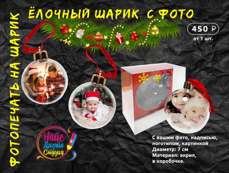 Елочные шары с индивидуальным изображением, фотопледы и футболки с фотопечатью — отличные варианты для подарка друзьям, коллегам и деловым партнерам. Обратившись в "Дизайн Студию Найс" прямо сейчас, вы сможете заказать подарки на Новый год заранее и подготовиться к праздничным дням без хлопот!