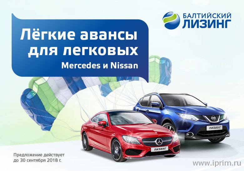 Компания «Балтийский лизинг» запускает очередное специальное предложение «Легкие авансы для легковых», в соответствии с условиями которого клиенты могут купить в лизинг легковые автомобили брендов Nissan и Mercedes с авансовым платежом от 0%. Предложение актуально до 31 декабря 2018 года.