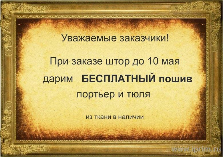 Даже если Вы не знаете точно, какая ткань будет смотреться идеально на Ваших окнах - смело обращайтесь в салон штор "Жар-Птица". В нашем салоне Вы не только сможете подобрать шторы или тюль для оформления интерьера (с помощью наших специалистов, конечно), но и получите бесплатный пошив портьер и тюля!