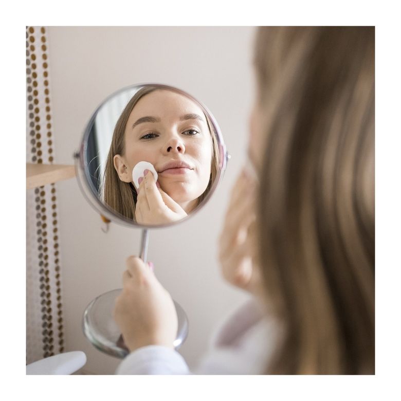 - На сухую кожу с помощью ватного диска нанесите тоник.