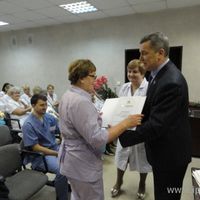 Еще два сотрудника – врач акушер-гинеколог Светлана Денисова и акушерка дородового отделения Лариса Милованова – были отмечены Благодарностью от думы города, которую они получили из рук депутата Дмитрия Легкого. От всего депутатского корпуса и лично председателя Думы г. Владивостока Елены Новицкой, он выразил признательность награжденным медикам и всему коллективу учреждения за профессионализм и трепетное отношение к здоровью пациентов и к самой жизни, у истоков которой ежечасно находятся специалисты родильного дома.