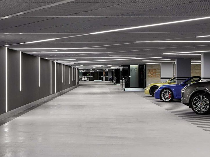 - Торговое (в супермаркетах, магазинах). Свет должен привлекать внимание к товарам на полках, при этом не переутомлять глаза. Используются трековые, точечные и модульные светильники, даунлайты.