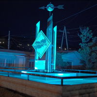 Вместо снесенной рыбокомбинатом старой стелы поставили новую конструкцию, а "Система Арт" снабдила памятник яркой подсветкой. Ночью мемориал начинает светиться разными цветами, как вы видите на наших фотографиях и видеоролике.